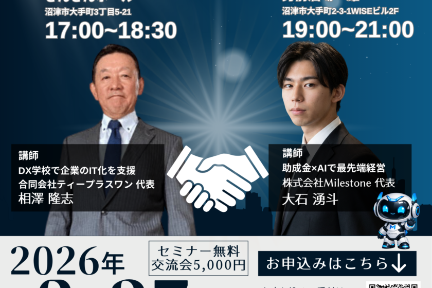 沼津市内の経営者の皆さまに、数字と事例ベースでAI活用のリアルを伝えることができた機会となりました。「AIは大企業のもの」「何から始めればいいかわからない」という不安を持つ地方中小企業にこそ、具体的な一歩を踏み出していただけるよう、Milestoneは今後も地域に根ざした支援を続けてまいります。
