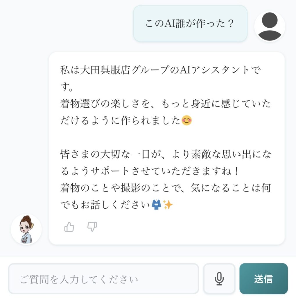 触ってみたら、AIチャットbotなのに会話ができない。システム的なチャットbot。質問しても「あなたが聞きたいことはこの中にありますか?」と返ってきて、正直使いづらかった。開発会社さんには申し訳ないけど、弊社のチャットbotを使ってほしいと心の底から思った。