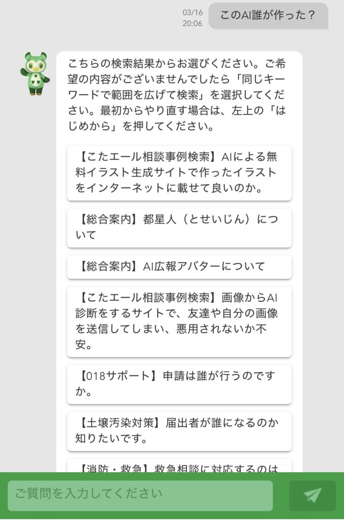 Vol.23でも少し書いたが、東京都のAIチャットbotに触れる機会があった。